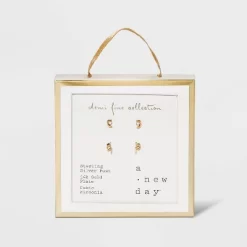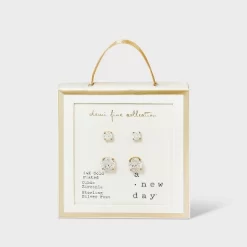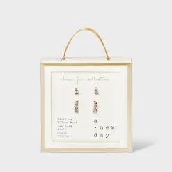 14K Gold Plated Cubic Zirconia Duo Stud Earring Set 2pc – A New Dayâ„¢ Gold