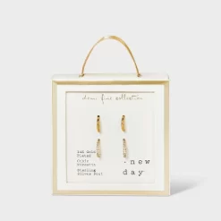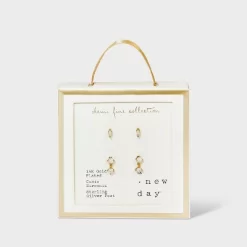 14K Gold Plated Cubic Zirconia Trio Stud Earring Set – A New Day™ Gold