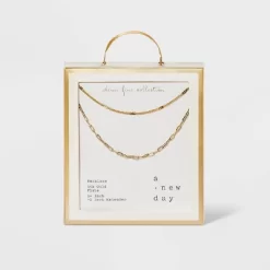 14K Gold Plated Flat Beaded And Link Chain Duo Necklace – A New Day™ Gold