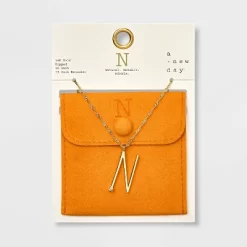 Surprise a loved one with a personalized gift with the Gold Dipped Scattered Cubic Zirconia Initial Pendant Necklace from A New Day™. This gold-dipped necklace features a linked chain adorned with a cubic zirconia accented “V” initial pendant to make it great for accessorizing everyday or special occasions. Designed with an extender chain, this “V” pendant necklace secures around the neck with the lobster claw clasp closure.