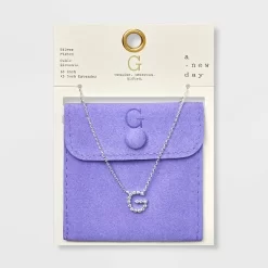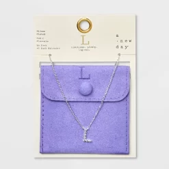 Silver Plated Cubic Zirconia Initial Pendant Necklace – A New Day™ Silver