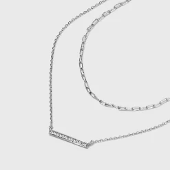 Refresh your accessory collection with the simply stunning style of the Sterling Silver Cubic Zirconia Multi-Strand Necklace from A New Day™. This sterling silver necklace features two linked chains — one with long links and another with short links for an amazing look. The short link chain features a cubic zirconia studded bar pendant to add glam appeal. Made with metal, this cubic zirconia necklace is easy to wear with the lobster-claw clasp closure.