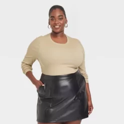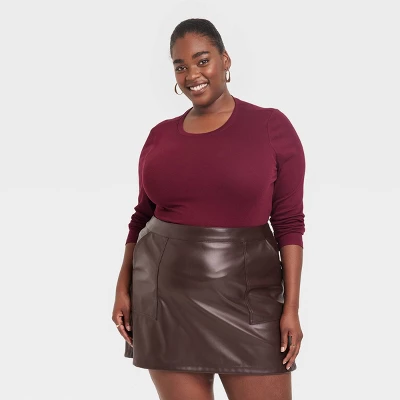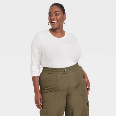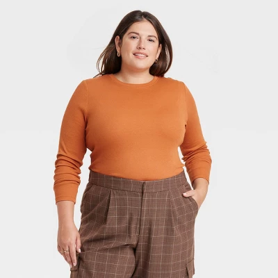 Expand your collection of basics with this Long-Sleeve Slim-Fit Crewneck T-Shirt from A New Day™. This long-sleeve T-shirt in a solid color features a classic crewneck, a ribbed design and a slim silhouette for a fitted look. The casual tee is made from soft, stretchy cotton-blend material for a comfortable fit, and is ideal for layering or wearing on its own. Wear with your choice of bottoms to create a range of versatile styles.