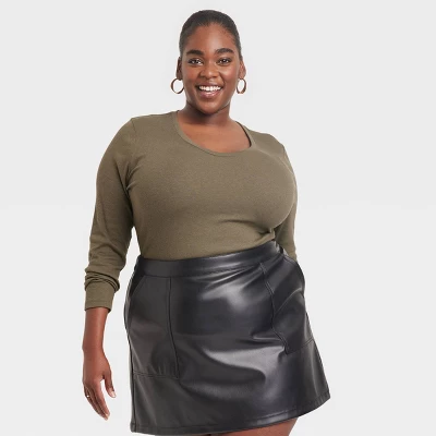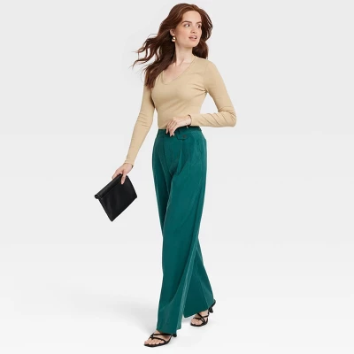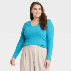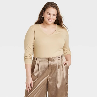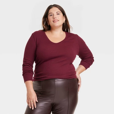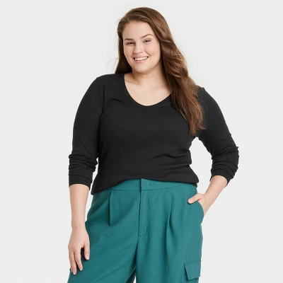 Update your everyday basics with this Long-Sleeve V-Neck T-Shirt from A New Day™. This long-sleeve T-shirt in a solid color features a V-neck, a ribbed construction and a standard fit. The soft, stretchy tee made from cotton-blend fabric offers a comfortable fit, and it’s ideal for layering or wearing on its own. Wear with your choice of bottoms to create a range of versatile styles.