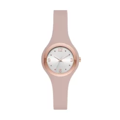 Keep track of time with this sleek and stylish Rubber Unibody Strap Watch from A New Day™. This pretty timekeeper comes with a round, rose gold face and a slim rubber strap for a pop of contrast, leaving you with a chic, minimalist look. Analog display keeps track of time down to the very second, while the adjustable buckle strap ensures a snug and secure fit against your wrist. The solid strap pairs easily with almost any outfit in your closet.