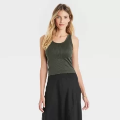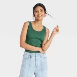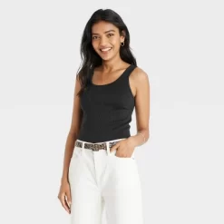 Refresh your warm-weather wardrobe with this Slim-Fit Ribbed Tank Top from A New Day™. This sleeveless tank top in a solid color makes a versatile wardrobe staple. Framed by a scoop neck and back, it features a vertical ribbed design and a flattering slim fit to create a sleek silhouette. The stretch material offers comfort and ease of movement, while the pullover style makes for easy wear. Just wear on its own with a range of bottoms, or layer under jackets or cardigans for cozy styling.